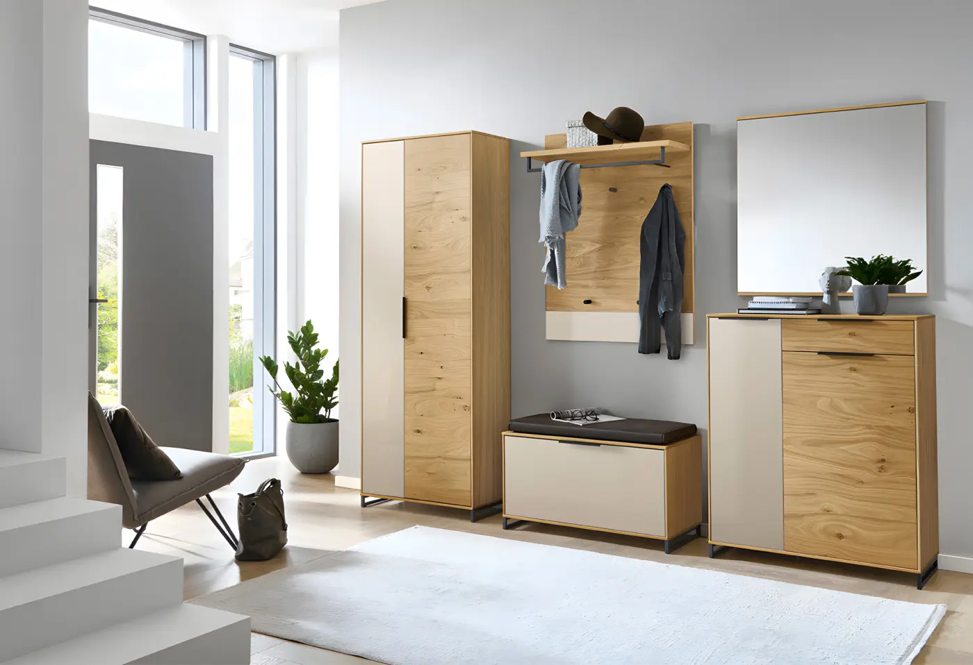 Garderobenpaneel Leontica Sadbeige Korpus Eiche ca. 80x106x27cm