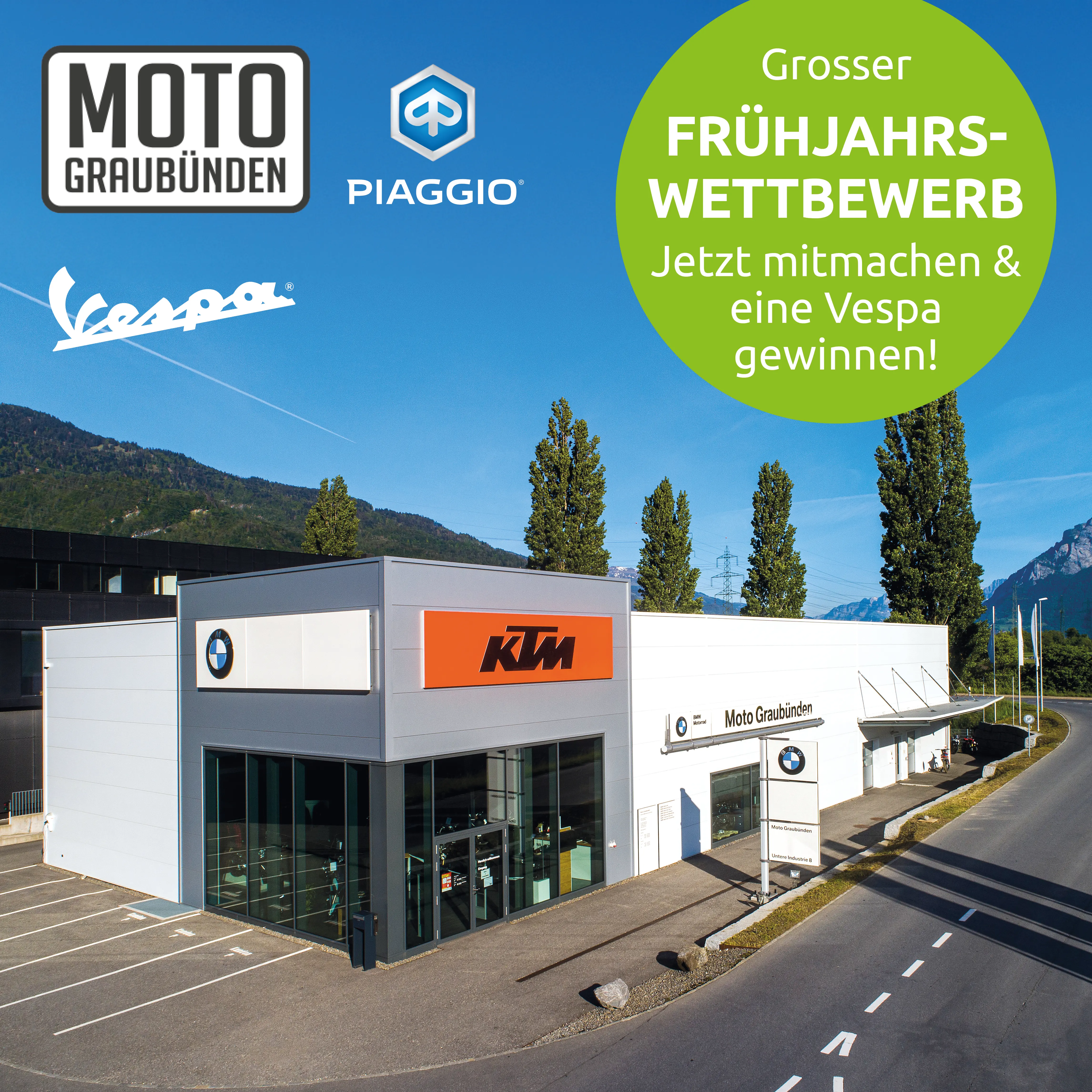 Erleben Sie die brandneuen Modelle von Moto Graubünden hautnah und sichern Sie sich exklusive Testfahrten. Nehmen Sie am grossen Frühjahrswettbewerb teil – mit etwas Glück gewinnen Sie eine Vespa!