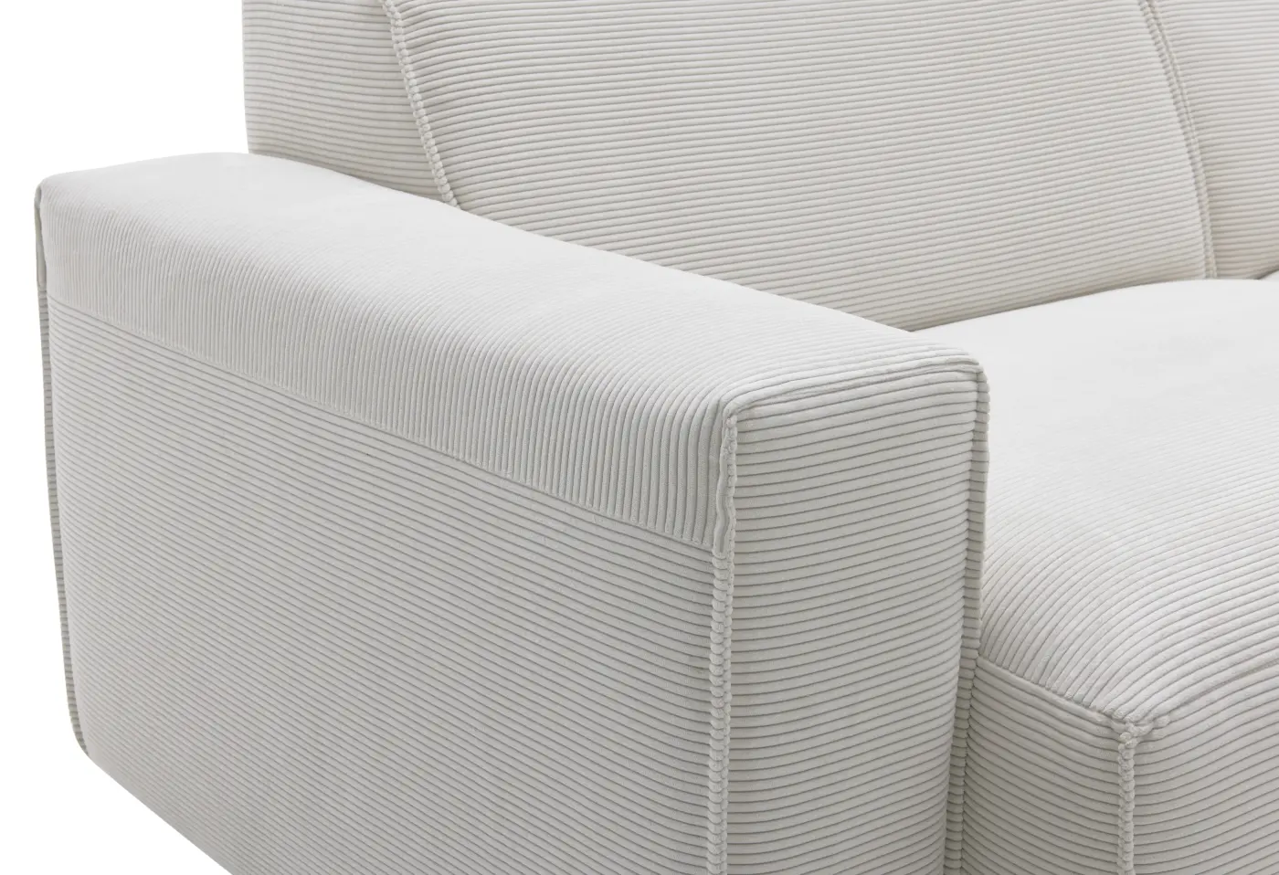 Die Polstergarnitur Roomio No. 4100 strahlt in elegantem Weiss und überzeugt mit ihrem hochwertigen Feincord-Stoff, der zusammen mit der weichen Kaltschaum-Polsterung besonderen Sitzkomfort bietet. Die großzügige Sitzfläche mit breiten, niedrigen Armlehnen lädt zum entspannten Verweilen und gemütlichen Stunden im Wohnzimmer ein. Mit den edlen Holztabletts aus natur lackierter Eiche wird jede Ablage zu einem Highlight – perfekt für Snacks oder das Lieblingsgetränk. Erleben Sie die Kombination aus modernem Design und praktischer Funktion bei Delta Möbel in Haag.