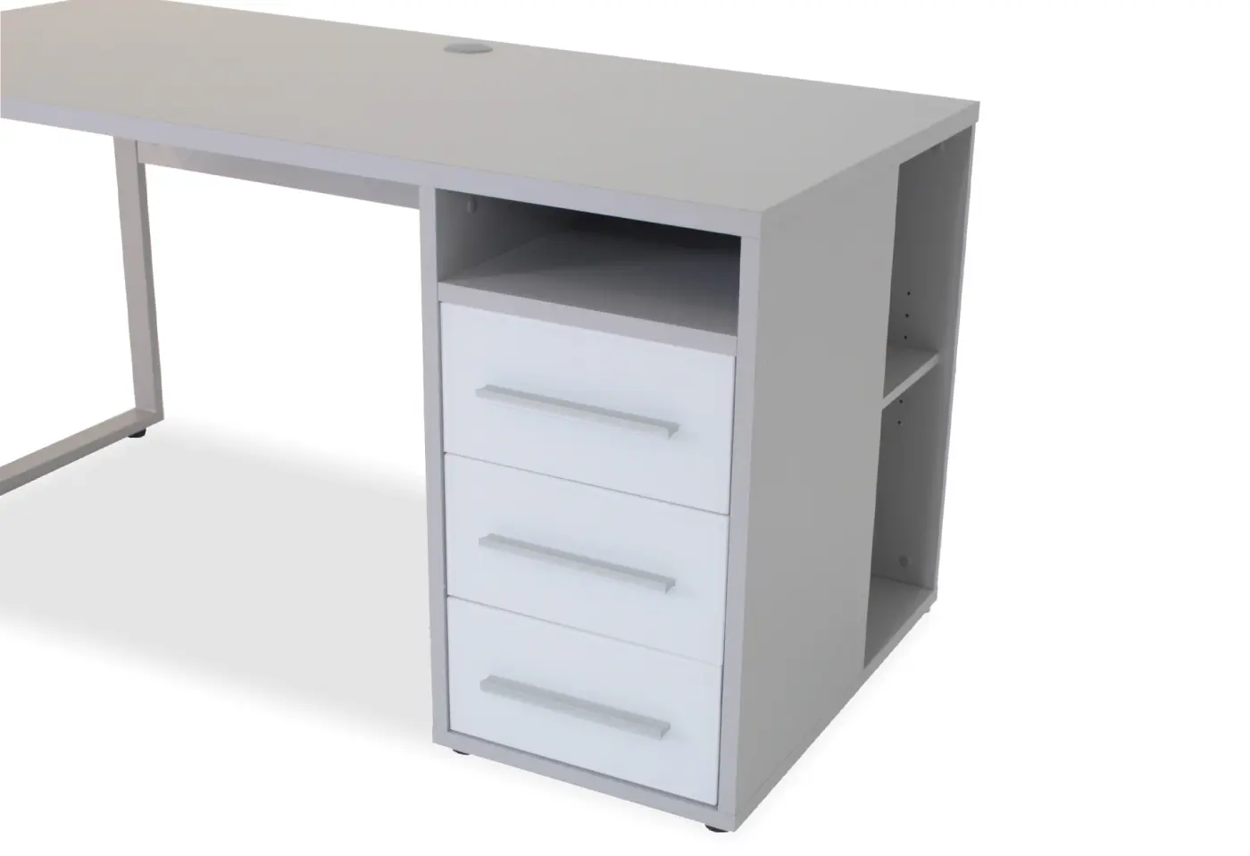 Der Schreibtisch Mogelsberg in elegantem Platingrau verbindet zeitgemässes Design mit hoher Funktionalität – perfekt für ein stilvolles und organisiertes Arbeitsumfeld. Die Tischplatte harmoniert wunderschön mit den hochwertigen Schubladenfronten aus Weissglas, während das Gestell in modernem Alu-Silber das Gesamtbild abrundet. Drei geräumige Schubladen bieten großzügigen Stauraum für Unterlagen und Büroutensilien, damit alles seinen Platz findet. Entdecke diesen praktischen Bürotisch exklusiv bei Delta Möbel in Haag – deinem Spezialisten für Büroeinrichtungen, Küchen und ausgesuchte Wohnaccessoires.